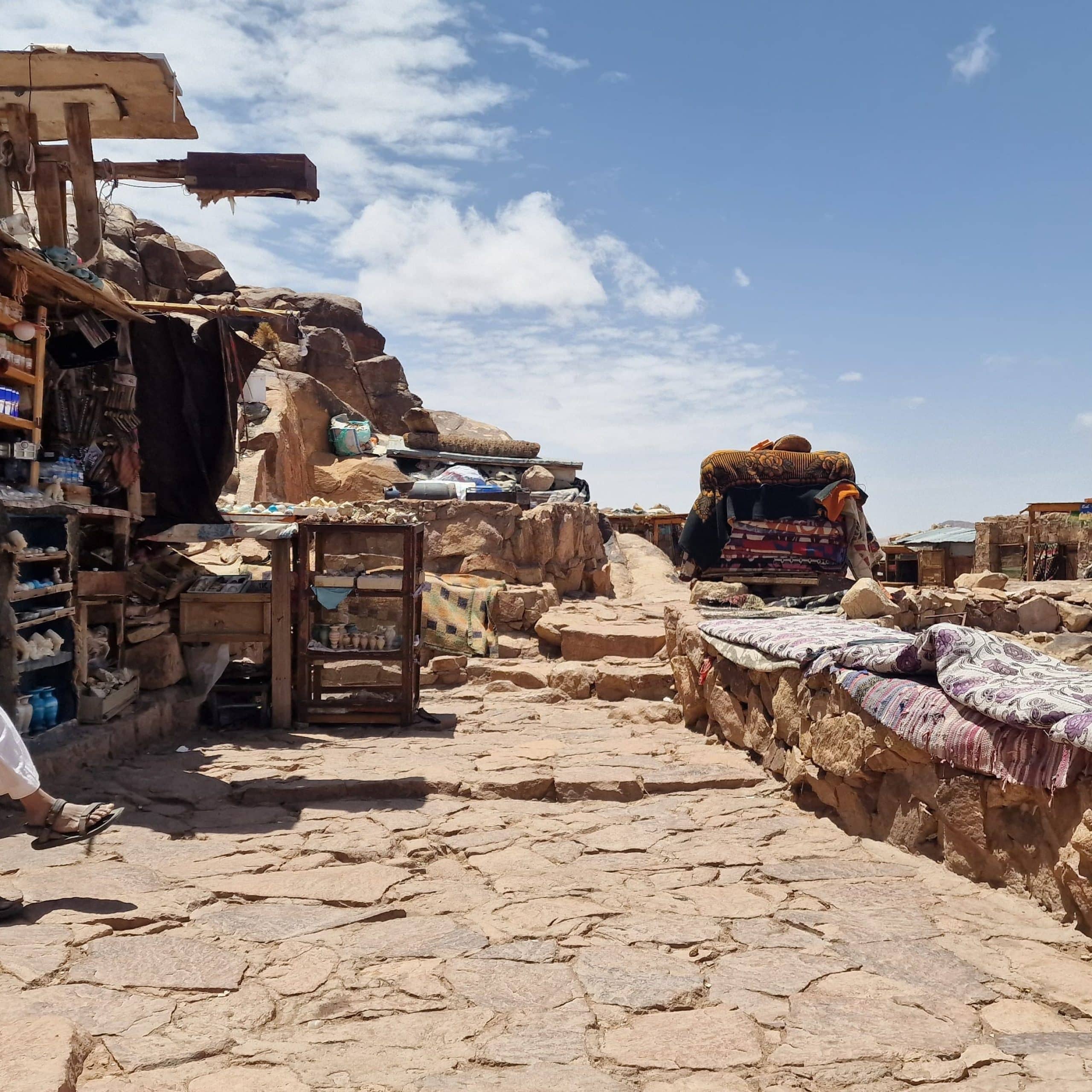 Along the way, there are small shops that have some snacks, tea, coffee, and other options of soft drinks. And on the way down there’s a shop that usually makes breakfast, which is a Bedouin bread with cheese, chocolate, or honey.